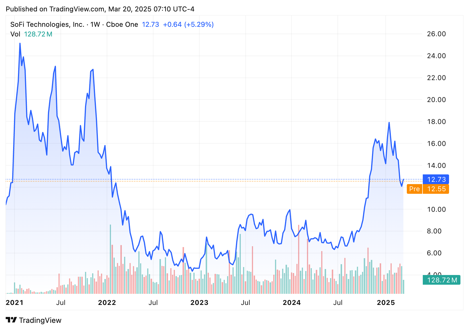 SoFi has successfully transformed from a student loan refinancing company to a diversified financial services platform with multiple revenue streams. Their achievement of profitability in 2024 marks a significant milestone, and their strategy of cross-selling products to increase customer lifetime value makes logical sense.